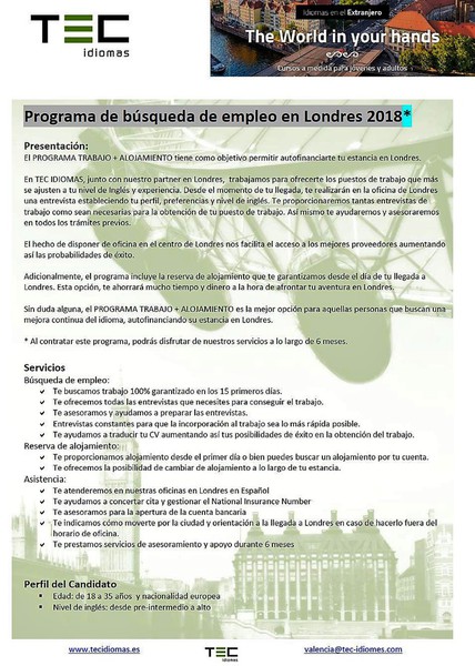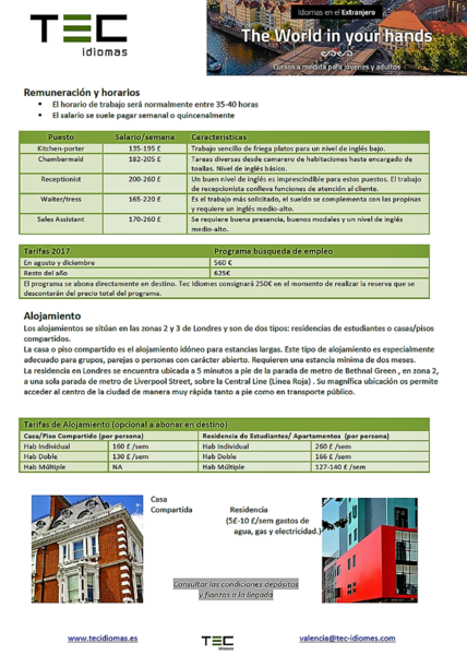 Trabaja en Londres como: Receptionist, Waiter, Waitress, Chambermaid, Kitchen-porter or Sales Assistant.